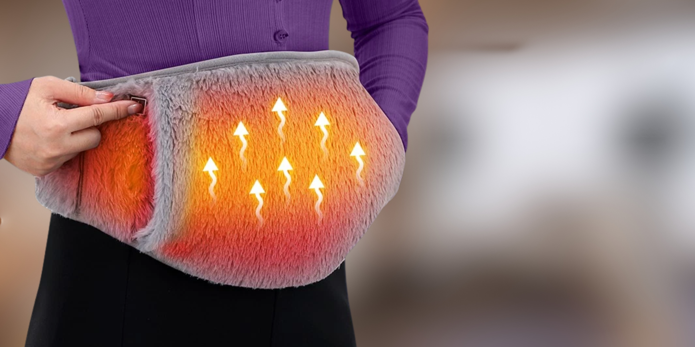 Plush Heated Waist & Stomach Belt with Hand Pockets. USB 3-Level Heating